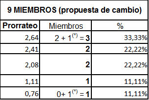 (*) Una vez repartidos los números enteros, el resto de delegados hasta completar el número de miembros total, se reparte sobre la parte decimal de mayor a menor.